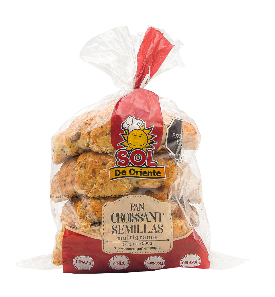 Croissant horneado y semihojaldrado, con 4 tipos de semillas que son: ajonjolí , chía, linaza y girasol, adicional aporta buena porción de calcio, proteina vegetal, omega 3 y vitamina B1 y B2.